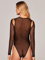 Body sem Bojo Skin; • Desenvolvido em tule transparente com toque macio • Possui forro em microfibra respirável na parte frontal • Modelagem raglan com mangas longas e detalhes em argolas banho rose gold no decote • Sem arco, sem bojo • Possui fecho no entrepernas com 3 opções de regulagem para diferentes alturas de tronco • Indicado para todos os tipos de corpos Composição: Tule: 90% Poliamida 10% Elastano Microfibra: 90% Poliamida 10% Elastano Forro: 100% Algodão