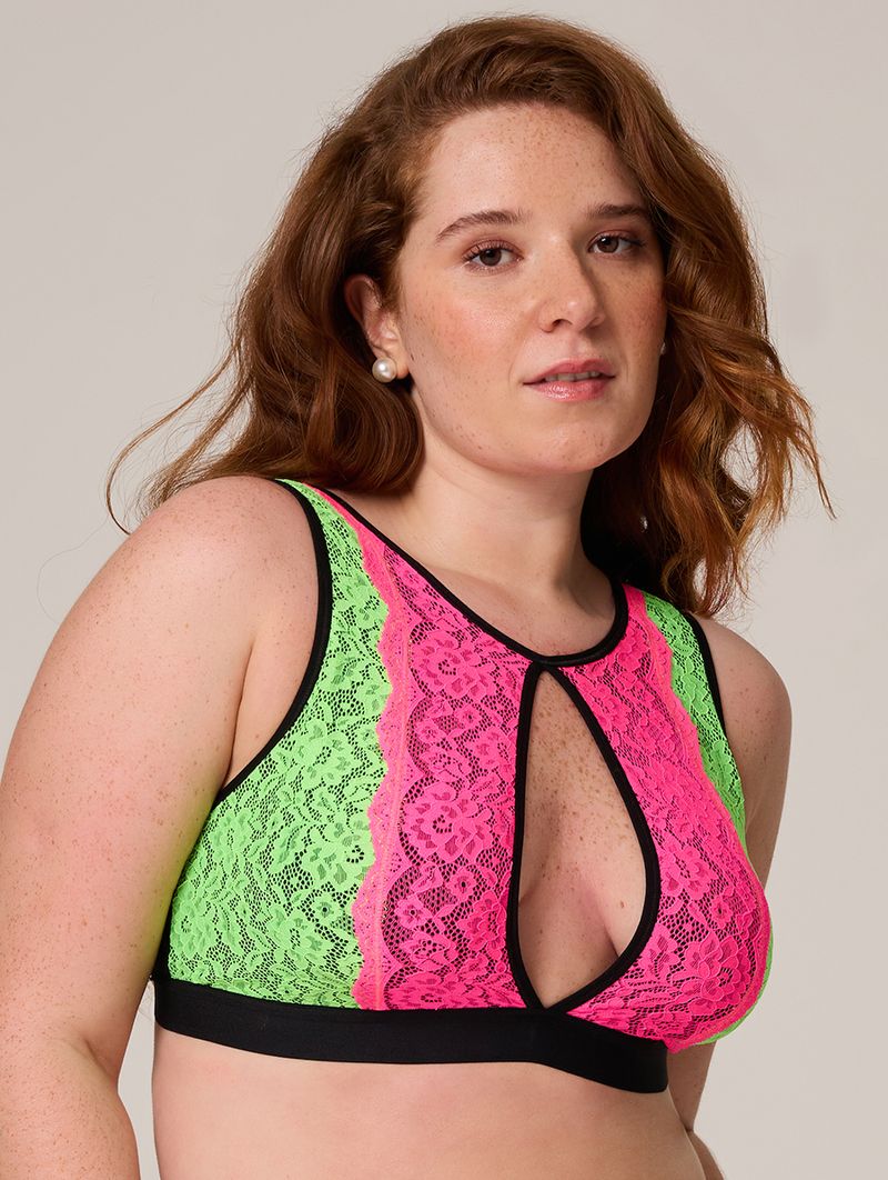 • Desenvolvido em renda neon exclusiva e microfibra macia